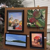Painting in fall in New England finds me outside painting red barns, apples, autumn leaves. I can be painting inside my studio with the wood stove on or outside in snow and 40 mph winds. Today its actually 75 degrees!